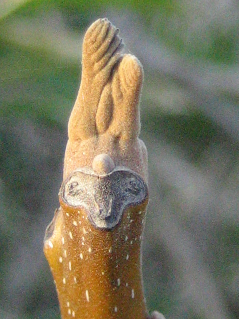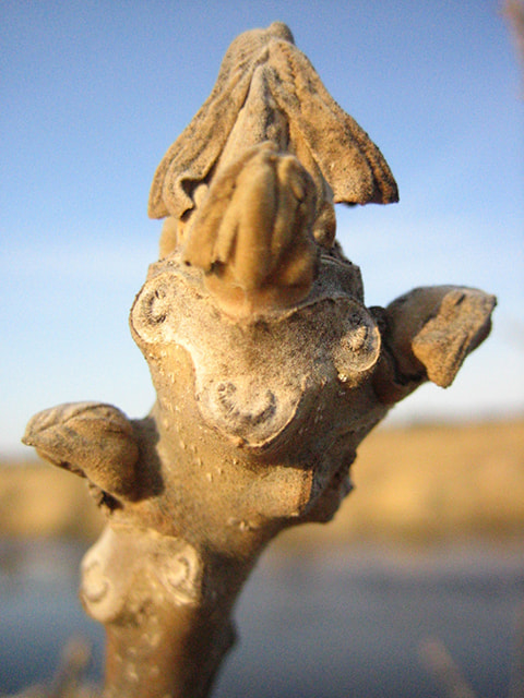 近くに葉を落としている小さい木があれば、幹や枝をよおく見てください。